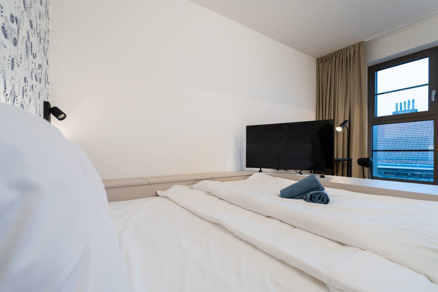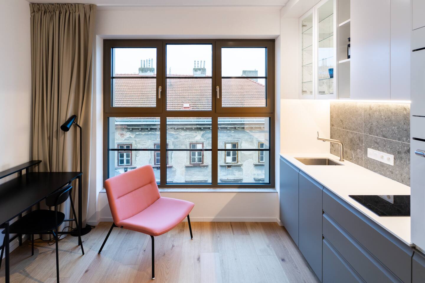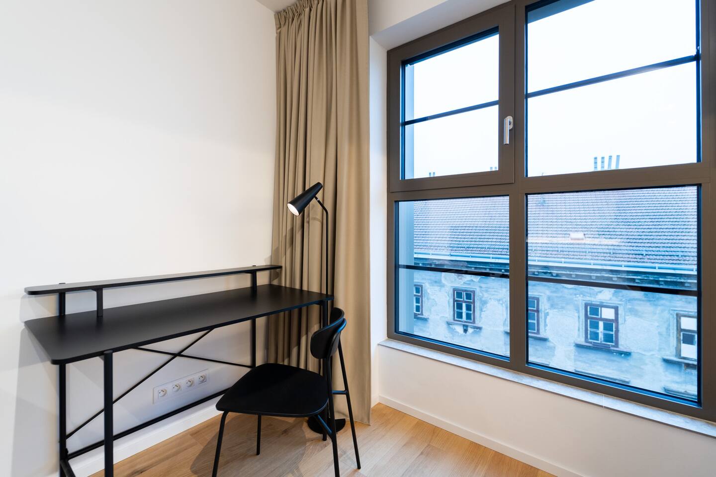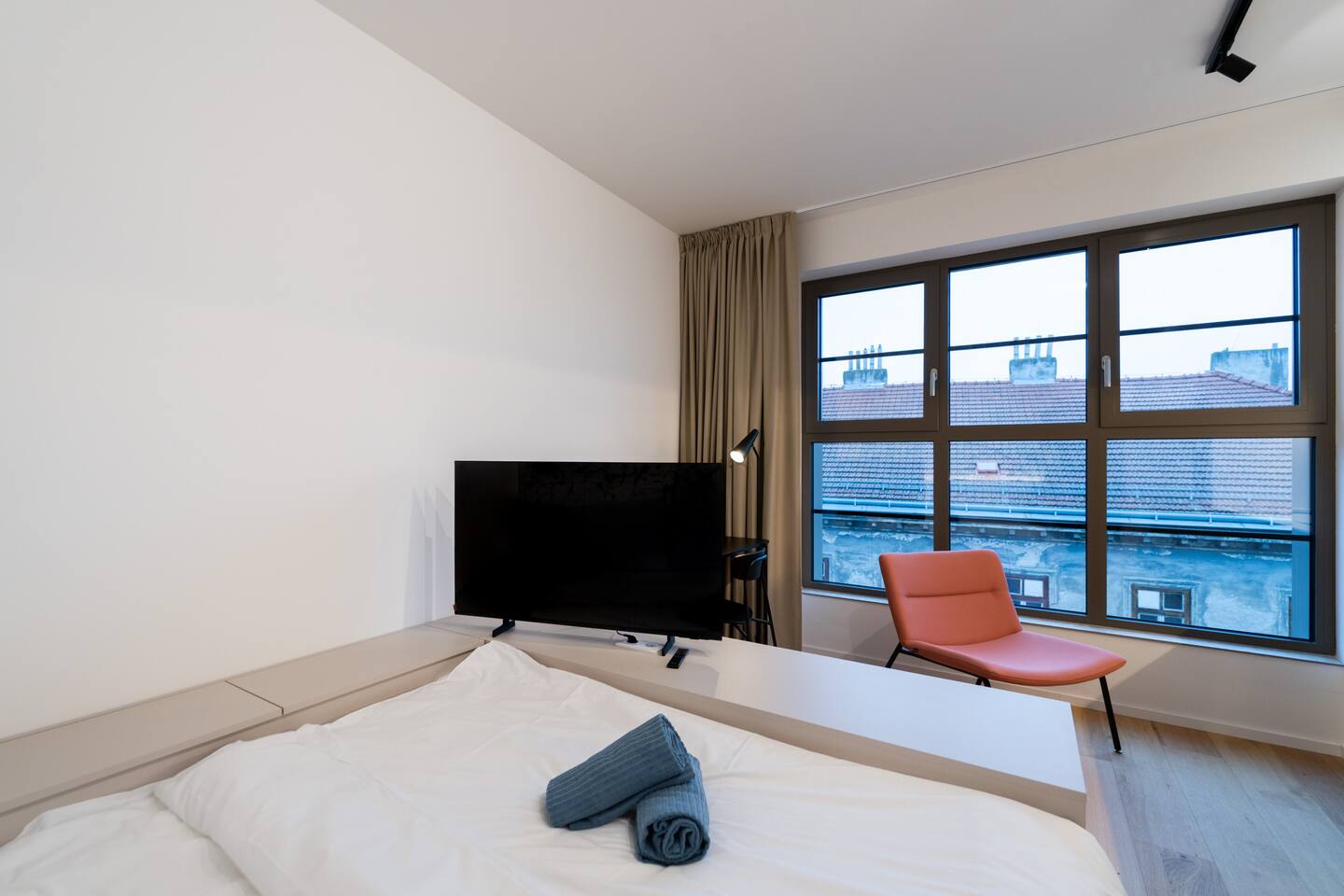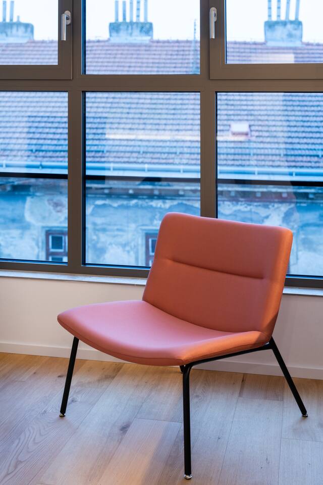 Jay Boutique Studio - Pattern Studios Brno is a clean, modern studio for two with a bright full-wall window and a sleek minimalist design. Perfect for travellers who appreciate simplicity and functionality. A 24/7 reception and an on-site bakery with breakfast options add convenience to every stay.