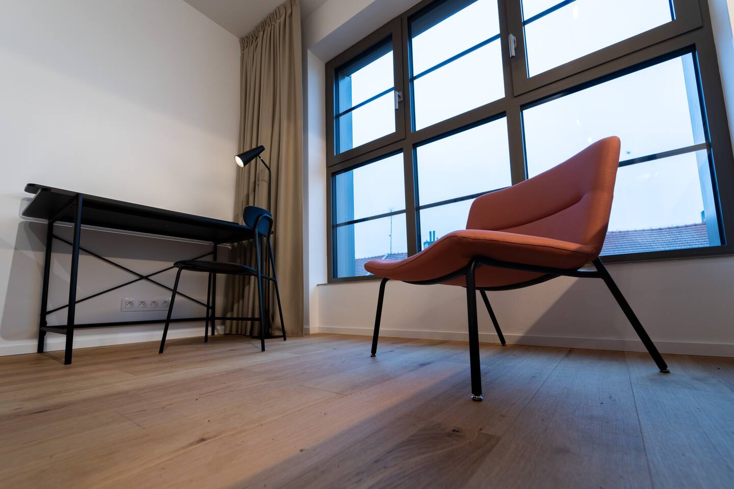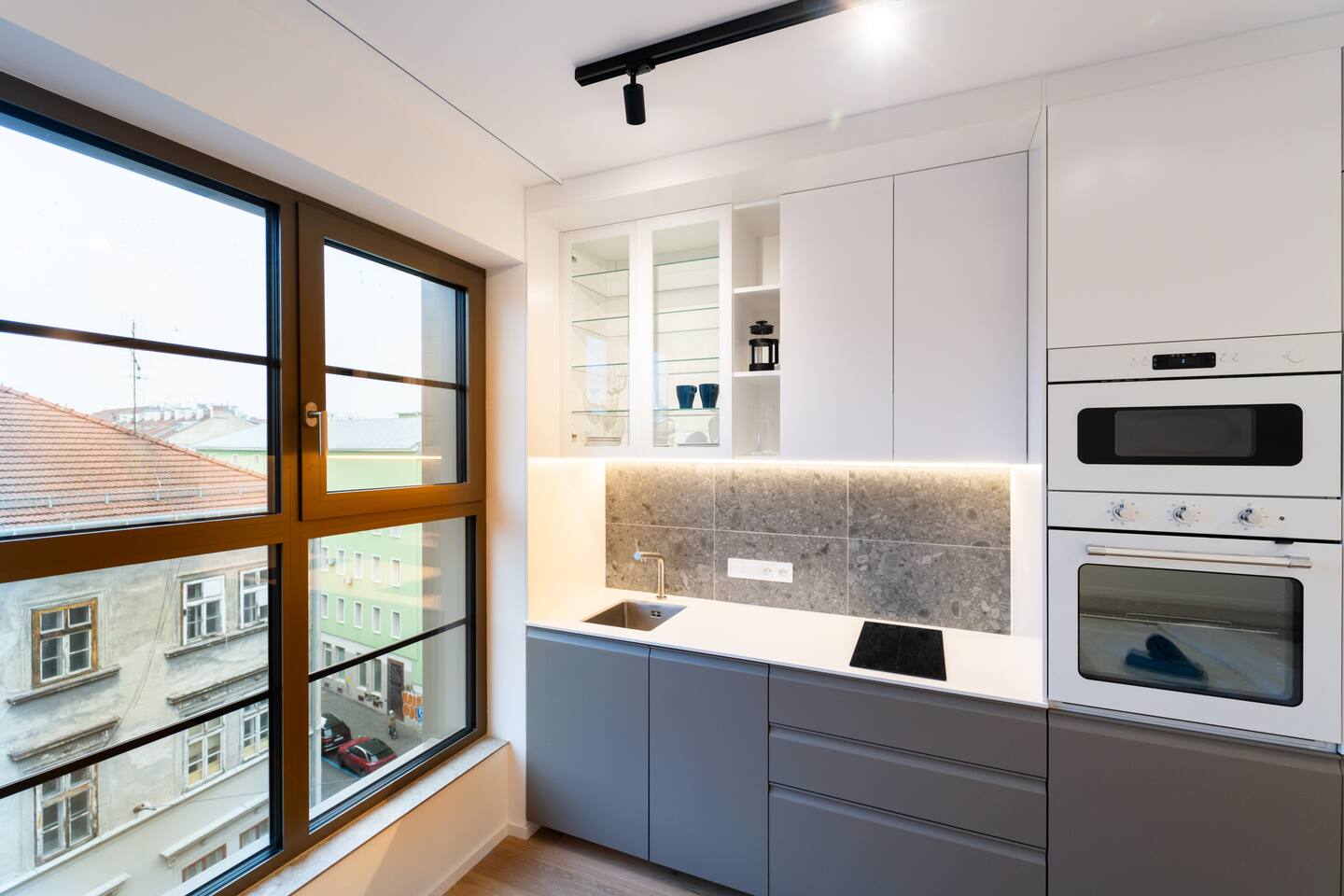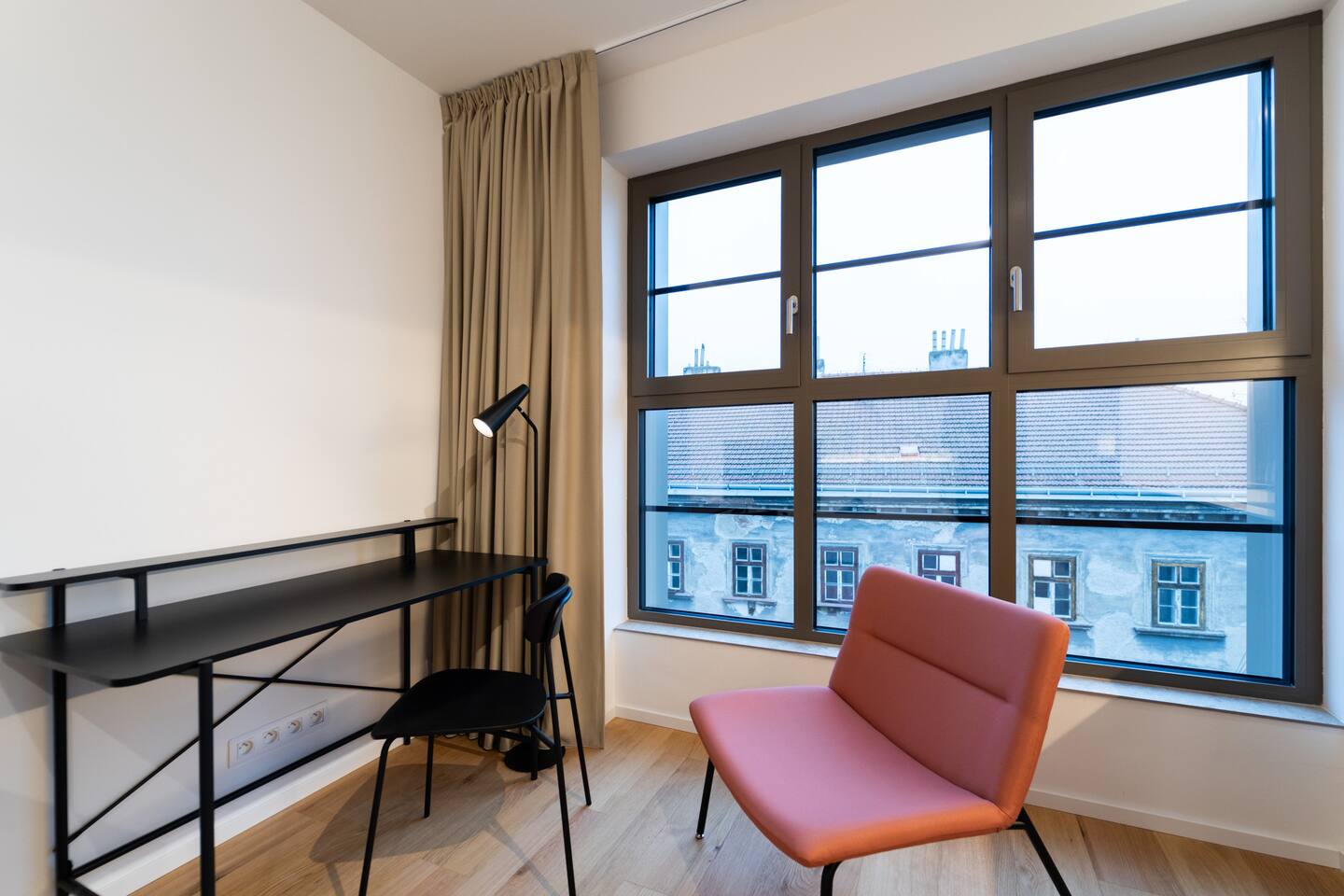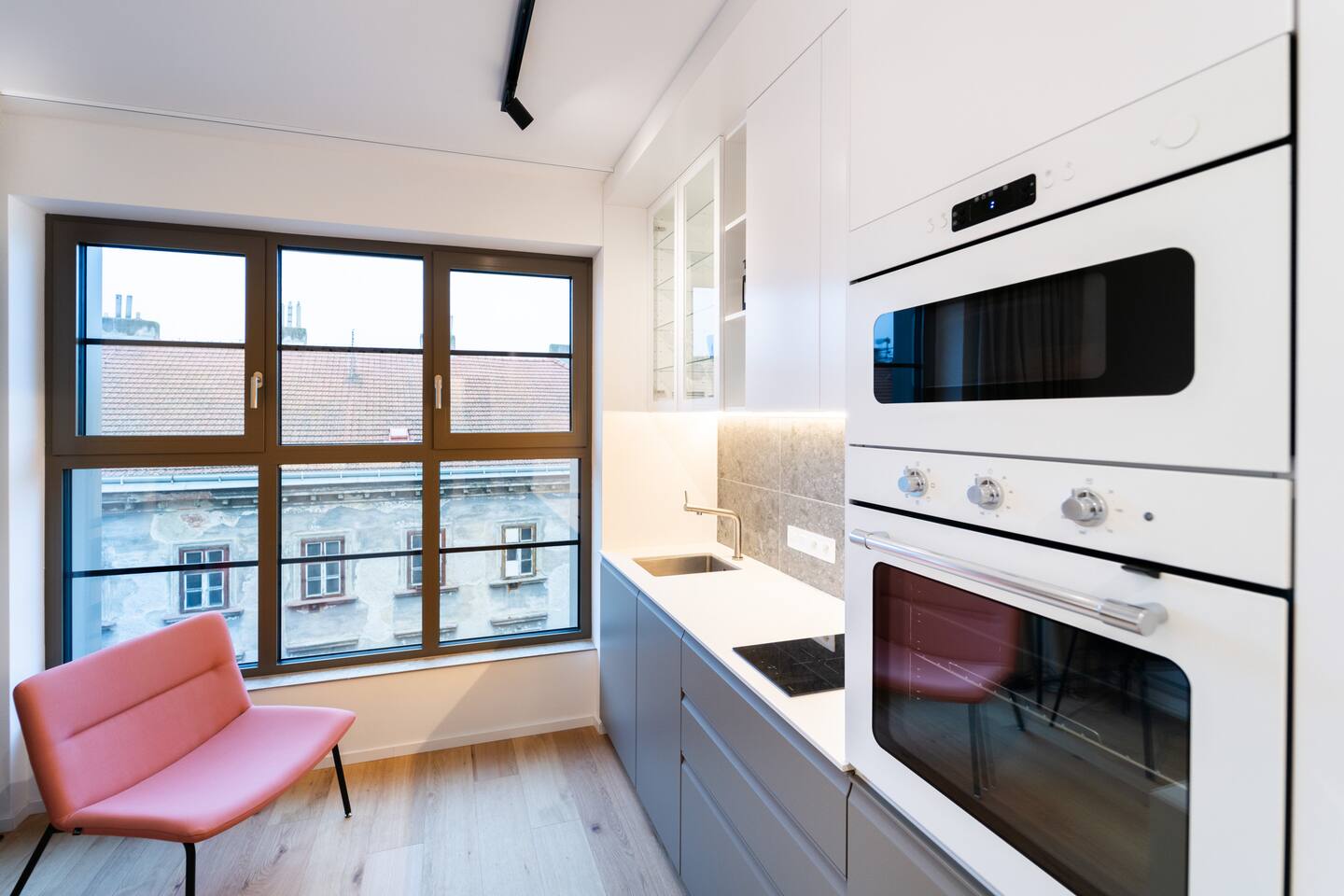 Jay Boutique Studio - Pattern Studios Brno is a clean, modern studio for two with a bright full-wall window and a sleek minimalist design. Perfect for travellers who appreciate simplicity and functionality. A 24/7 reception and an on-site bakery with breakfast options add convenience to every stay.